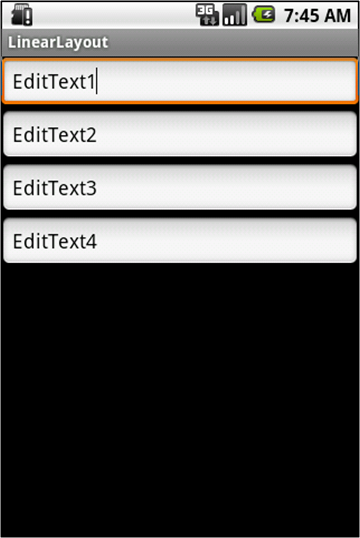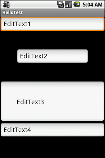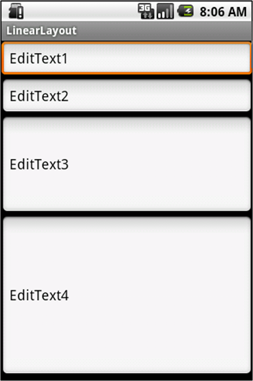 // “EditText4” 위젯이 “EditText3” 위젯보다 두 배의 공간을 차지하게 된다.